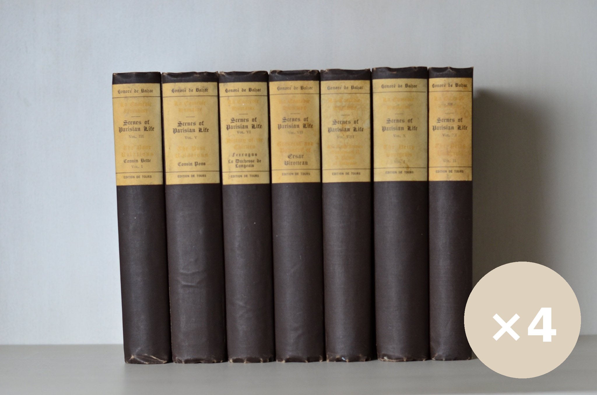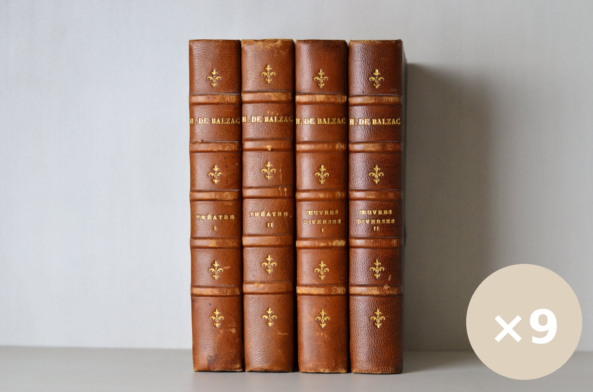 Dark Brown Antique Leather Book Set – 4 Books, Honore de Balzac, Fleur de Lis