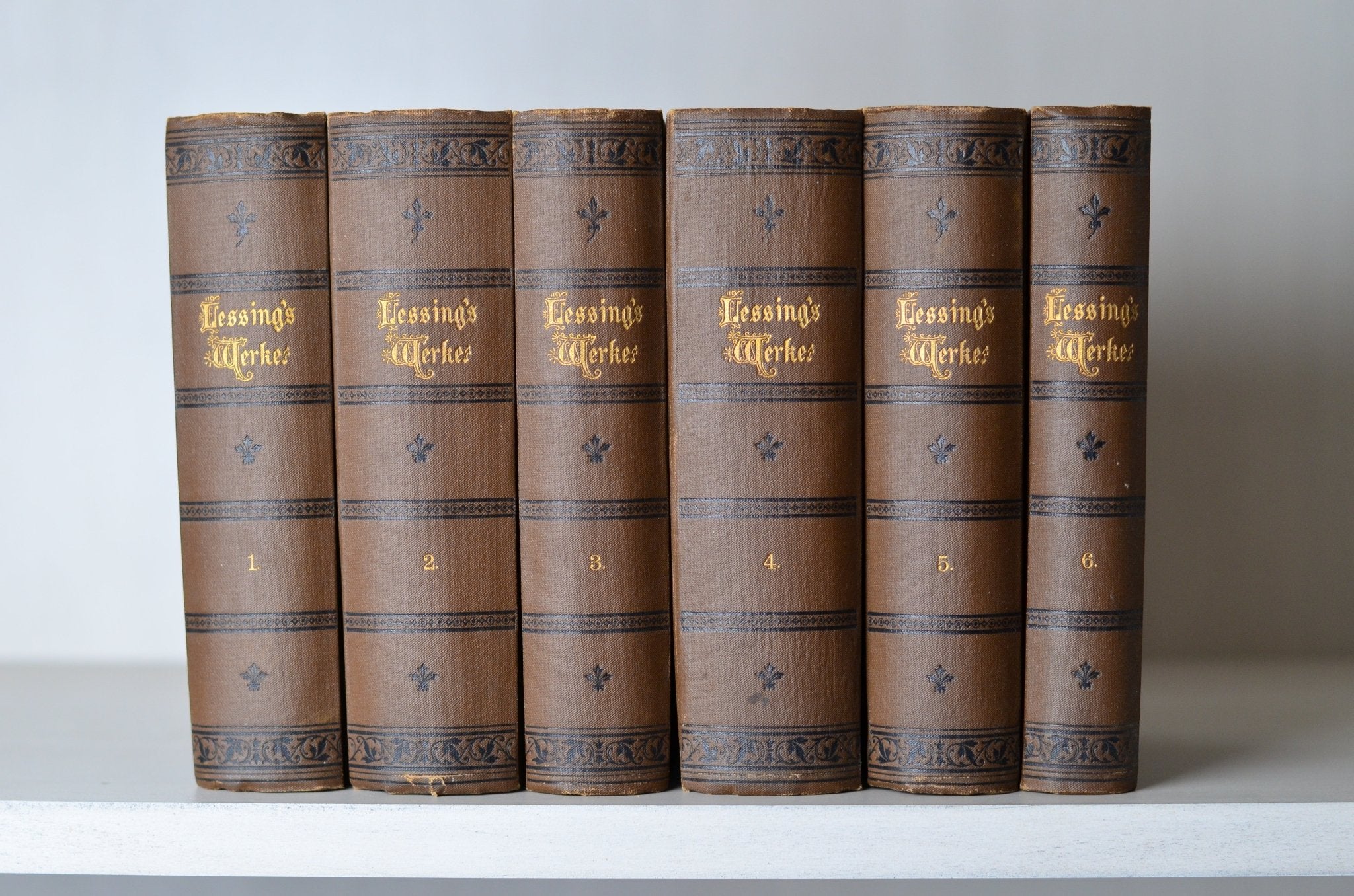 Dark Brown Antique Cloth Book Set – 6 Books, Lessing