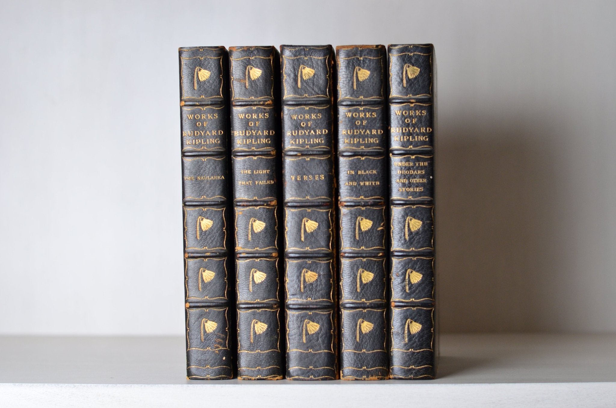 Black Antique Leather Book Set – 5 Books, Rudyard Kipling