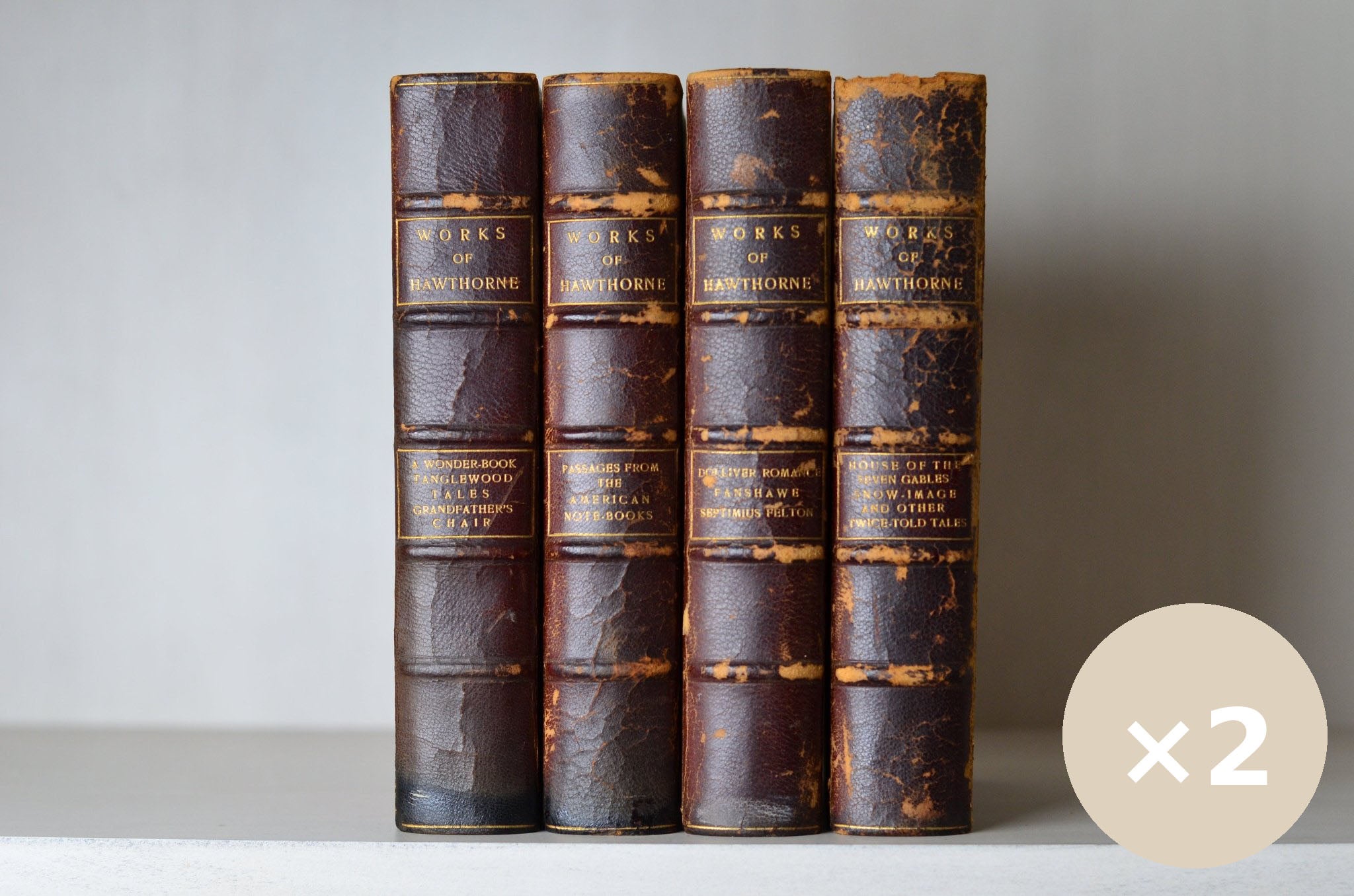 Dark Brown Antique Leather Book Set – 4 Books, Nathaniel Hawthorne