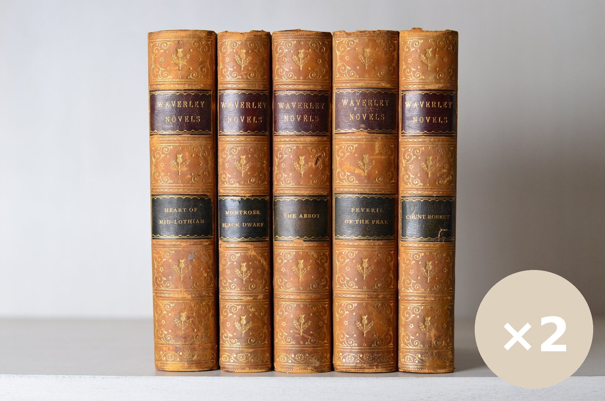 Light Brown Antique Leather Book Set – 5 Books, Sir Walter Scott