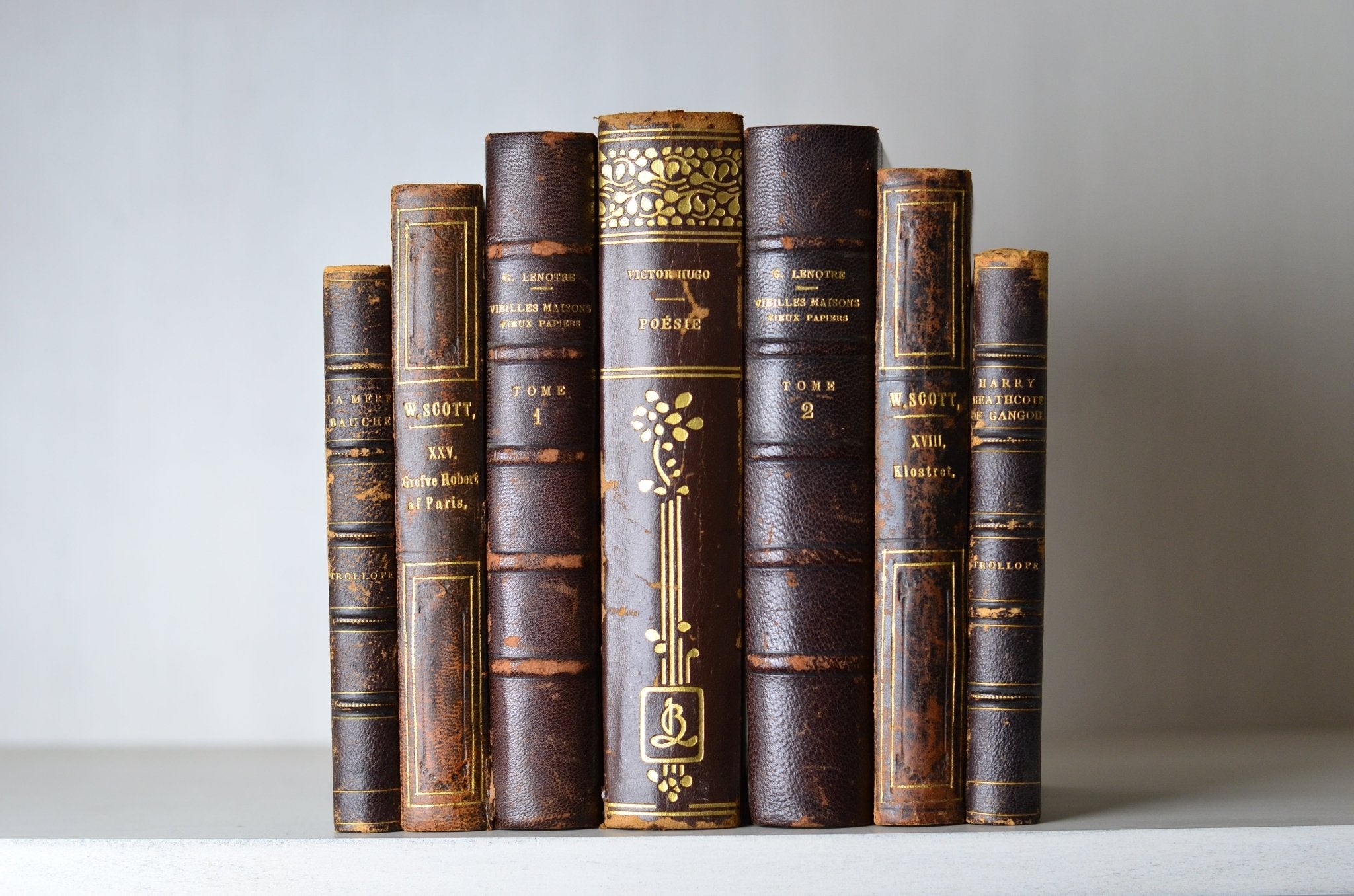 Dark Brown Antique Leather Book Set – 7 Books, Victor Hugo