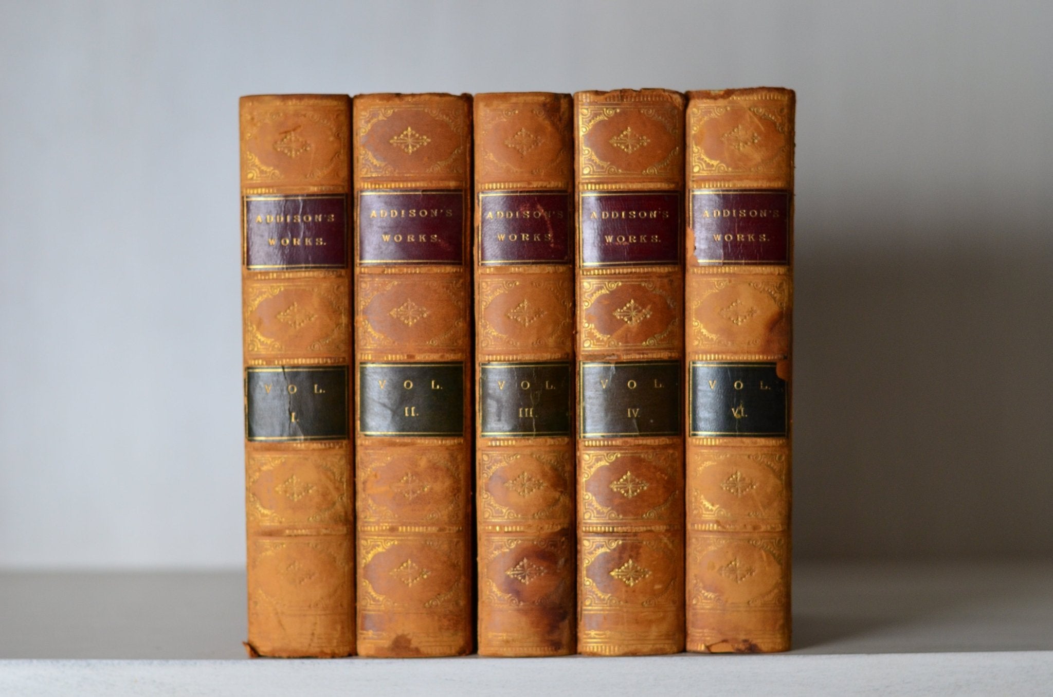 Light Brown Antique Leather Book Set – 5 Books, Joseph Addison