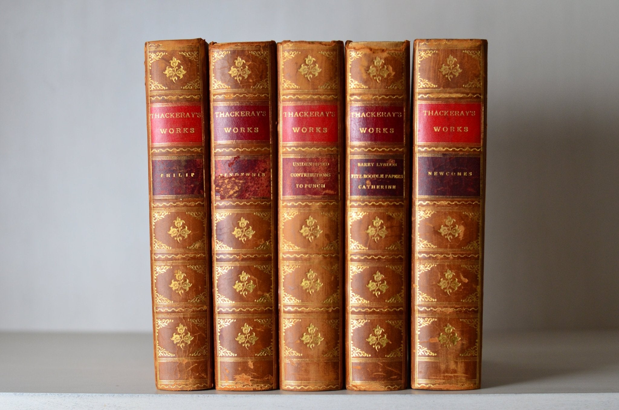 Light Brown Antique Leather Book Set – 5 Books, William Makepeace Thackeray