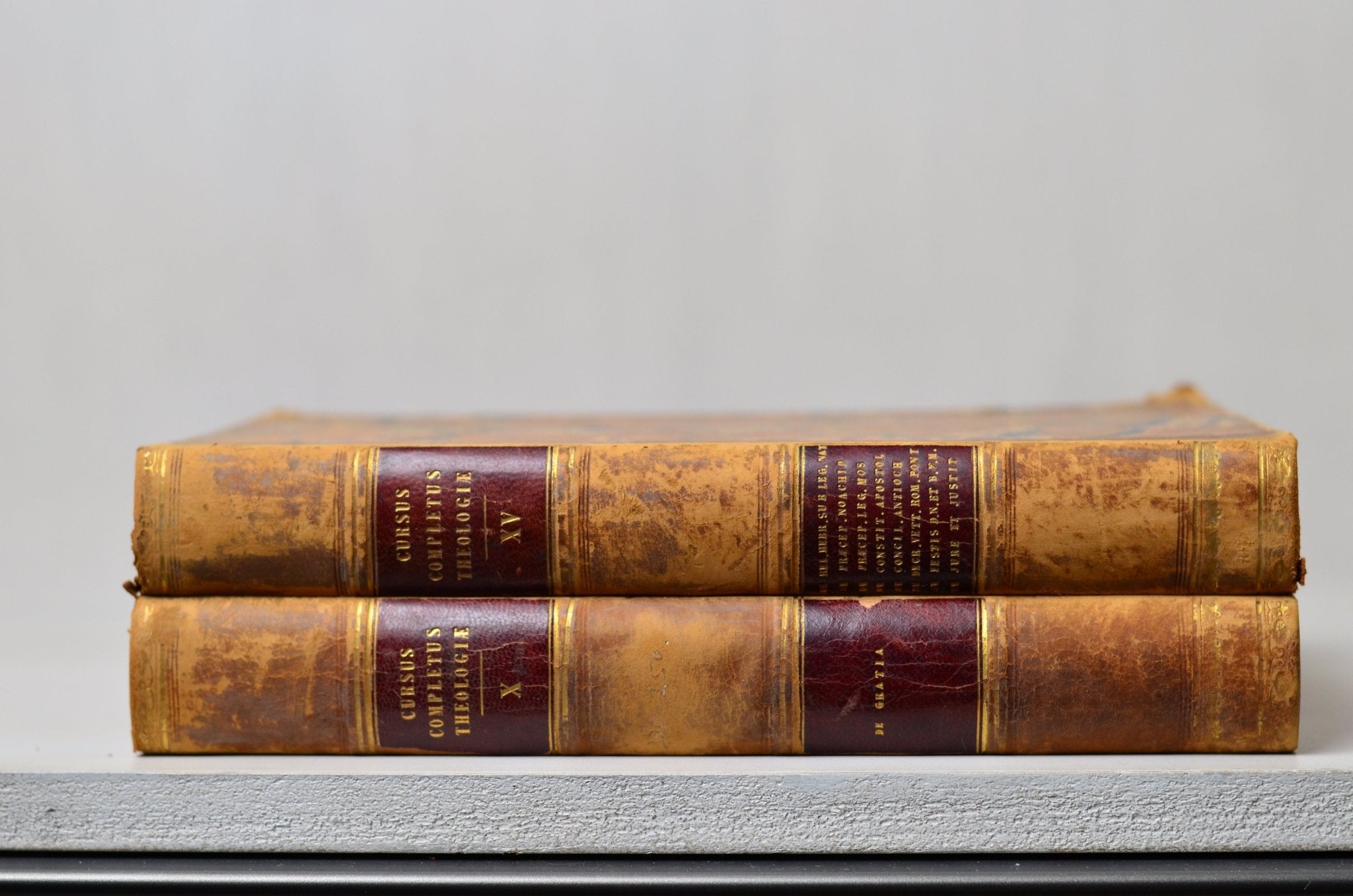 Light Brown Antique Leather Book Set – 2 Oversized Books, Complete Course in Theology