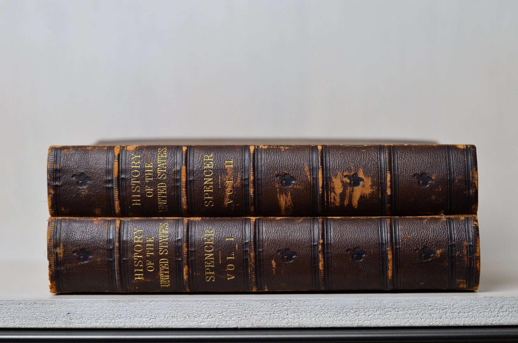 Dark Brown Antique Leather Book Set – 2 Oversized Books, History of the United States