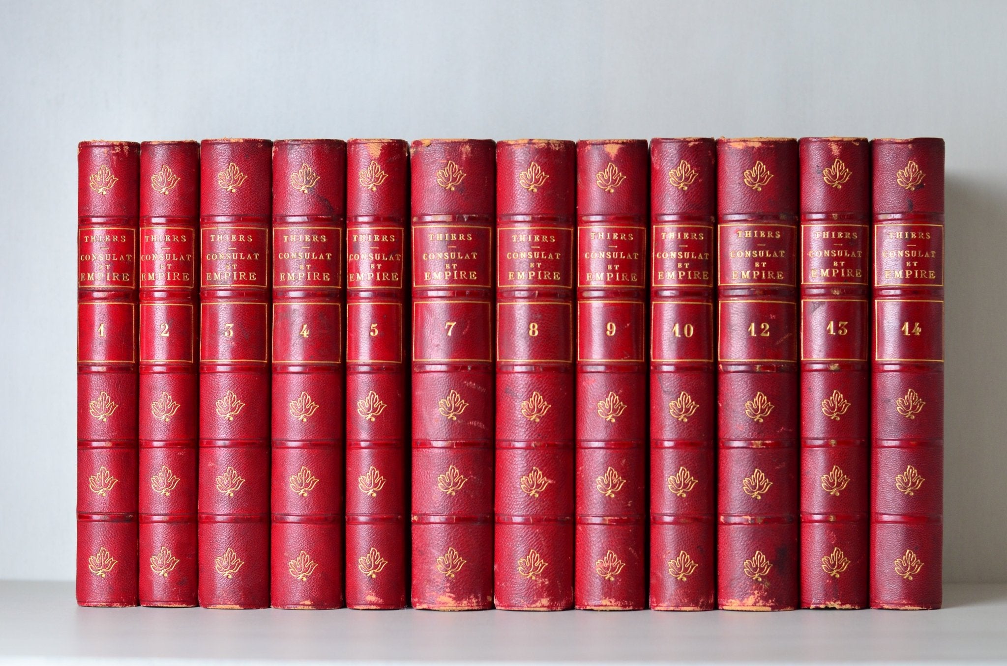 Red Antique Leather Book Set – 12 Books, Histoire du Consulat et de L’Empire by M. A. Thiers