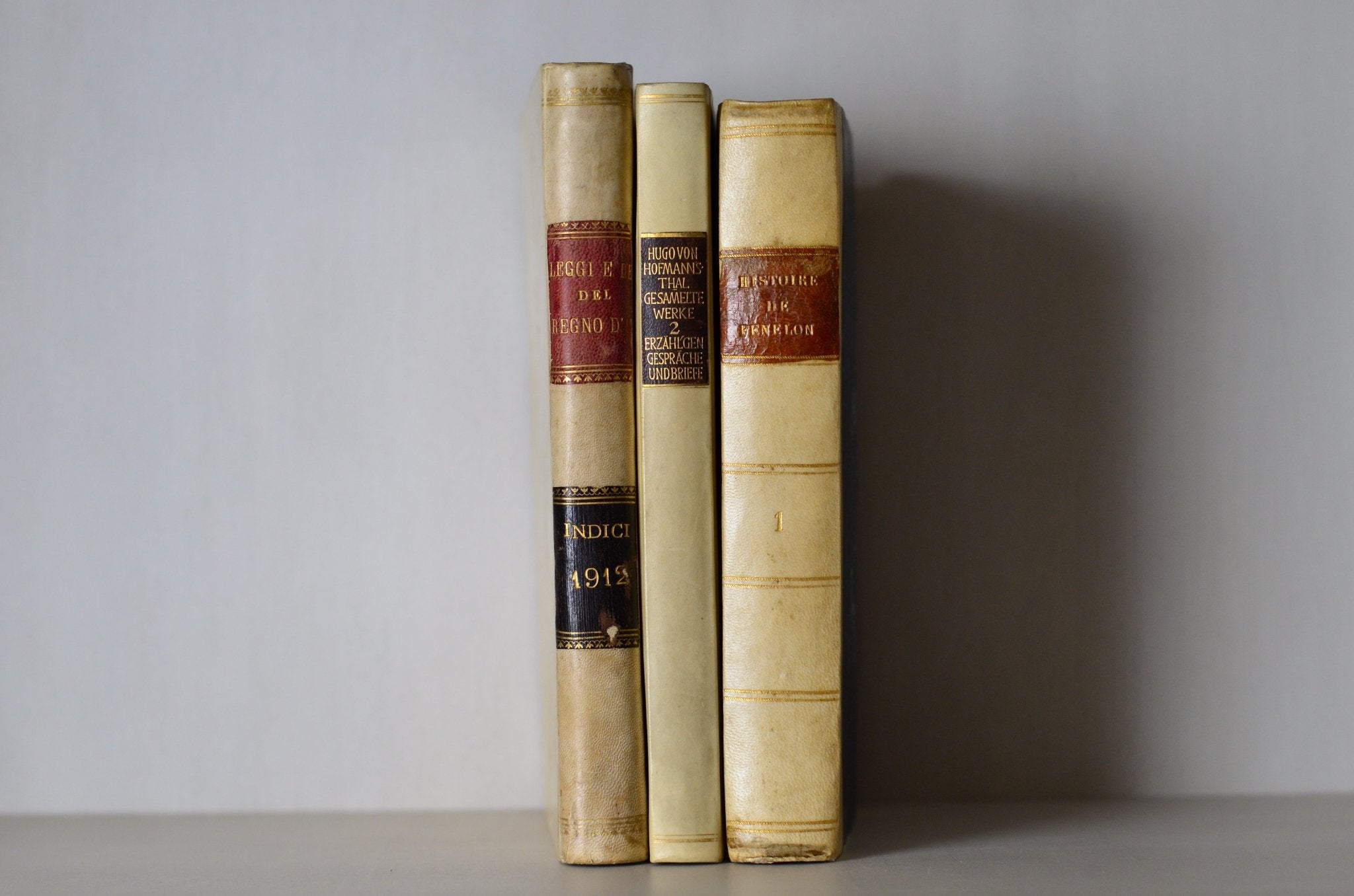 White Antique Vellum Book Set – 3 Books, Histoire de Fenelon