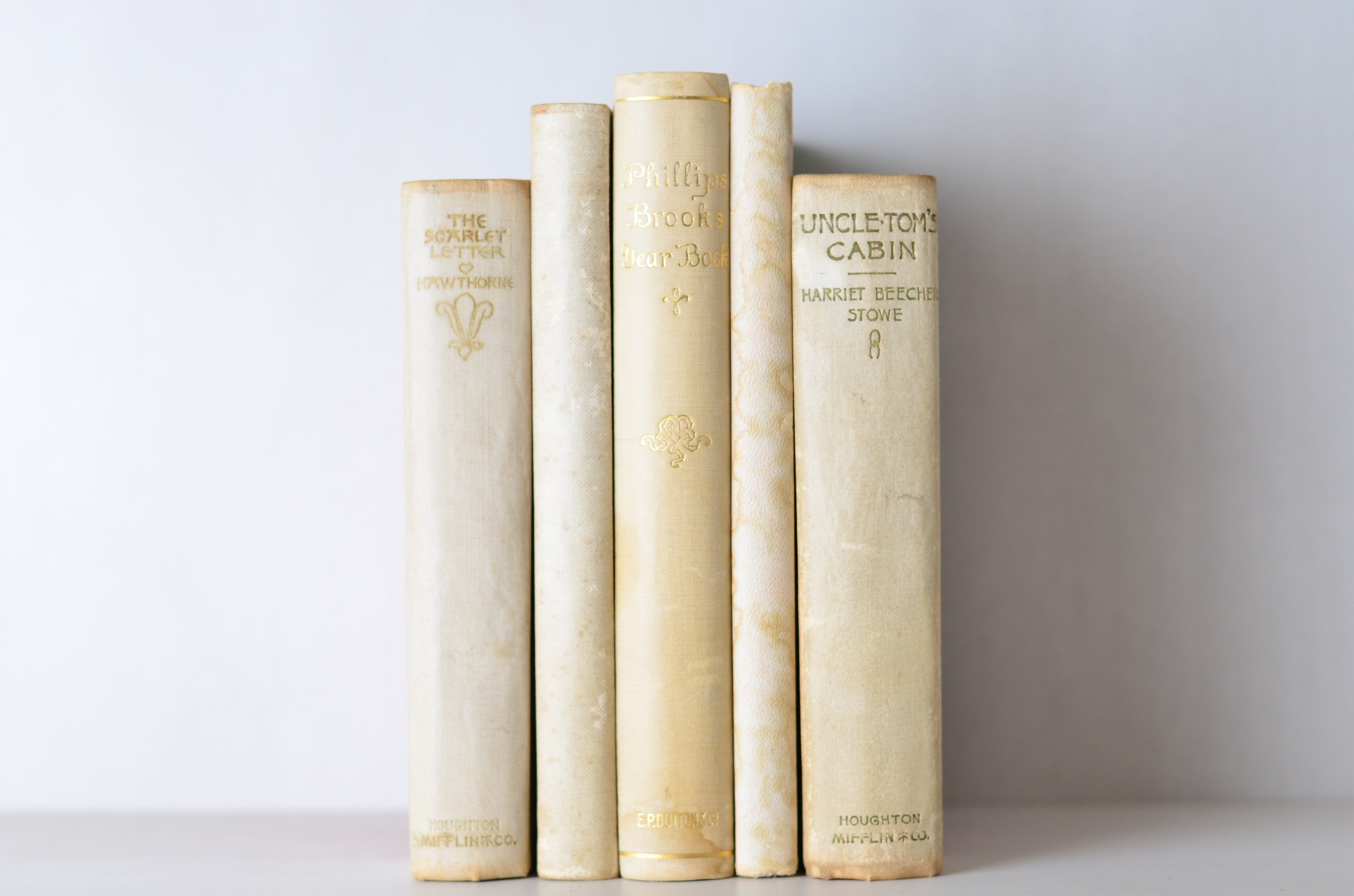 White Antique Cloth Book Set – 5 Books, Nathaniel Hawthorne, Harriet Beecher Stowe